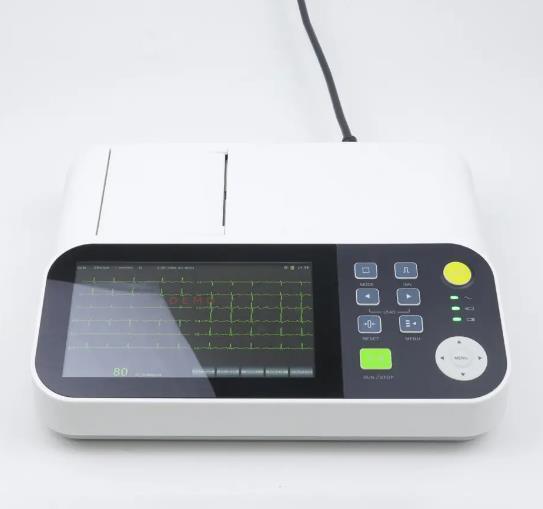 2.Aquisición simultánea de 12 conductores, pantalla completa de 12 canales de ondas de ECG. Pantalla a color de 7 ', tanto con botón pulsado como con toque (opcional).